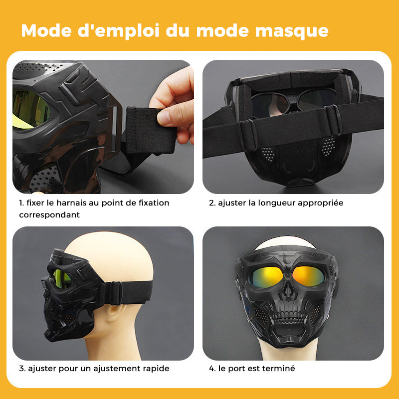 DESIGN ERGONOMIQUE - Le design en arc vous offre une vision large, et les trous sur les deux tailles et la bouche du masque font circuler l'air interne en douceur, vous permettant de respirer de l'air frais.