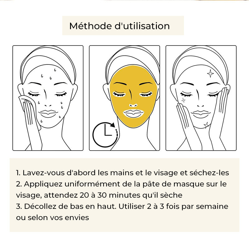 Utilisation: Ouvrez, retirez le masque et appliquez doucement sur le visage pour que le masque soit complètement absorbé, maintenez pendant 15 à 20 minutes, puis rincez.