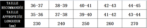 • Jaune, rose, bleu clair, vert clair pour femme, taille 38-39 et 40-41 uniquement. Noir, gris, bleu foncé pour homme, tailles 40-41, 42-43, 44-45.