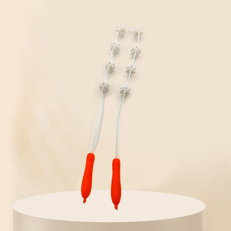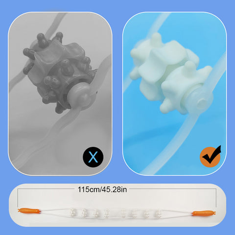 Caractéristiques: la poignée est confortable et le corps principal adopte la structure combinée à rouleaux. L'utilisation de plastiques techniques ABS non toxiques et insipides, un processus de moulage unique, constitue une fonction de produit belle et durable, 8 longues boules de massage surélevées et 12 longues petites boules surélevées (environ 45 pouces), adaptées pour soulever et soulever le taille, Rolling massage des épaules, des fesses, des jambes et d'autres parties.