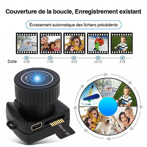 Mini-caméra Design compact et élégant, supporte la webcam, supporte le format vidéo AVI.