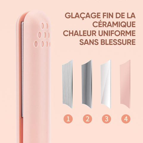Glaçage céramique: Le panneau chauffant recouvert de céramique possède une bonne conductivité thermique, ce qui permet de chauffer les cheveux uniformément sans les abîmer. Il vous aide à créer un look lisse et brillant.