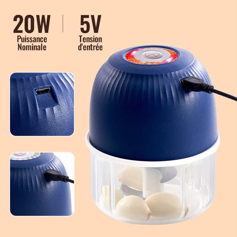 【Portable et rechargeable par USB】Le hachoir à ail se recharge par USB. Ce mini hachoir électrique est facile à ranger. Et vous pouvez l'apporter lorsque vous êtes en camping, voyage, pique-nique, barbecue, etc.
