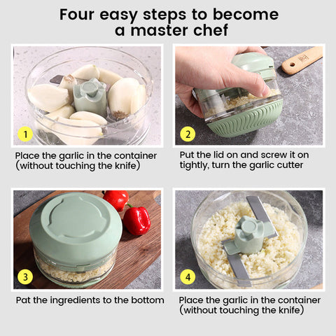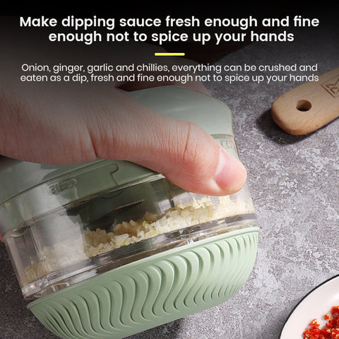 • 【MULTIFUNCTIONã€?/strong>Our manual garlic chopper is with a reinforced blade, it will not only help you chop garlic, ginger, peppers, onions, vegetables, fruits, nuts, capsicum, onion, carrot,but also can be a mincer and shredder to cut meat,is very suitable for mixing salads, making sauces, mixing eggs and cream.