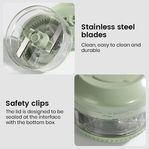 • 【FOOD GRADE MATERIALã€?/strong>The mini manual food processor is made of high quality food grade ABS and PC plastic. Rustproof and corrosion resistant 304 double stainless steel sharp blades with removable design for thoroughly wash,which is harmless to your family and children, so please don't worry about using it.