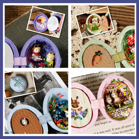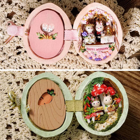 🐰 Design innovant: la forme de cette mini maison de poupée est une maison en résine de noyer, et le mignon lapin vit dans la maison de poupée.
