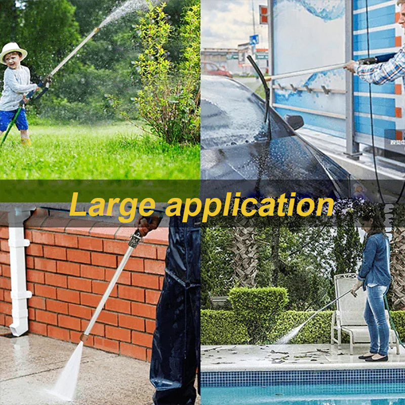 - Basculez entre 2 buses! La buse à jet puissant peut être utilisée à des fins de nettoyage comme le rinçage des taches tenaces, de la moisissure, de la boue, de la saleté, etc. La buse à jet doux est idéale pour laver/pulvériser sur une grande surface, ce qui est idéal pour l'arrosage du jardin, le lavage de l'argent, etc.