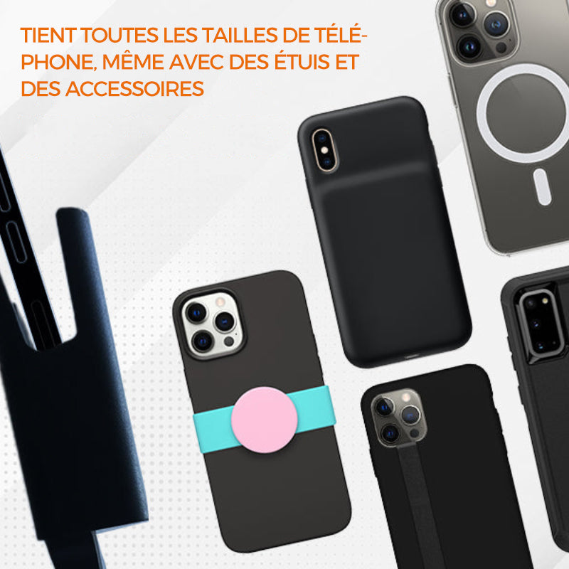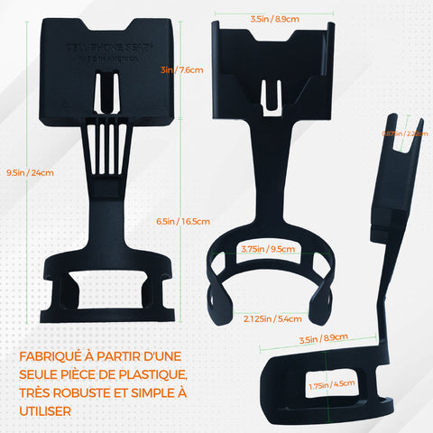 POLYVALENT: Se plie pour s'adapter à un porte-gobelet de 3 à 4 pouces de diamètre. Convient à la plupart des téléphones, avec ou sans étuis et accessoires, et permet de monter les téléphones à l'horizontale ou à la verticale.
