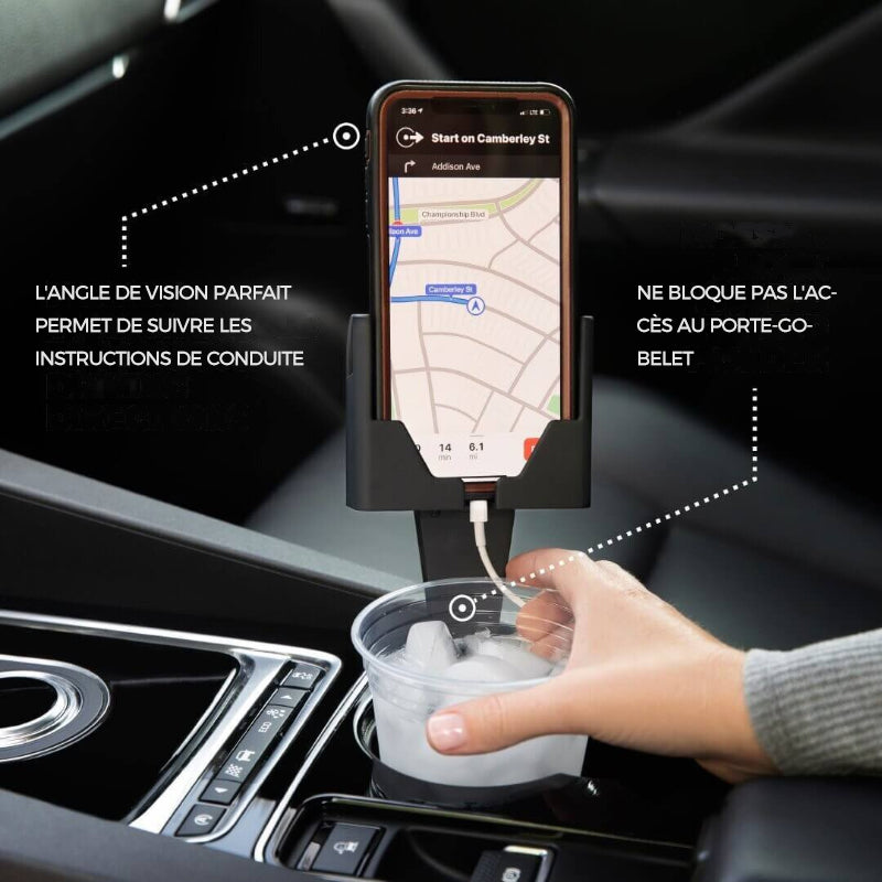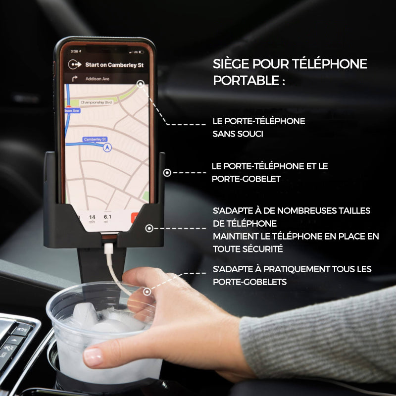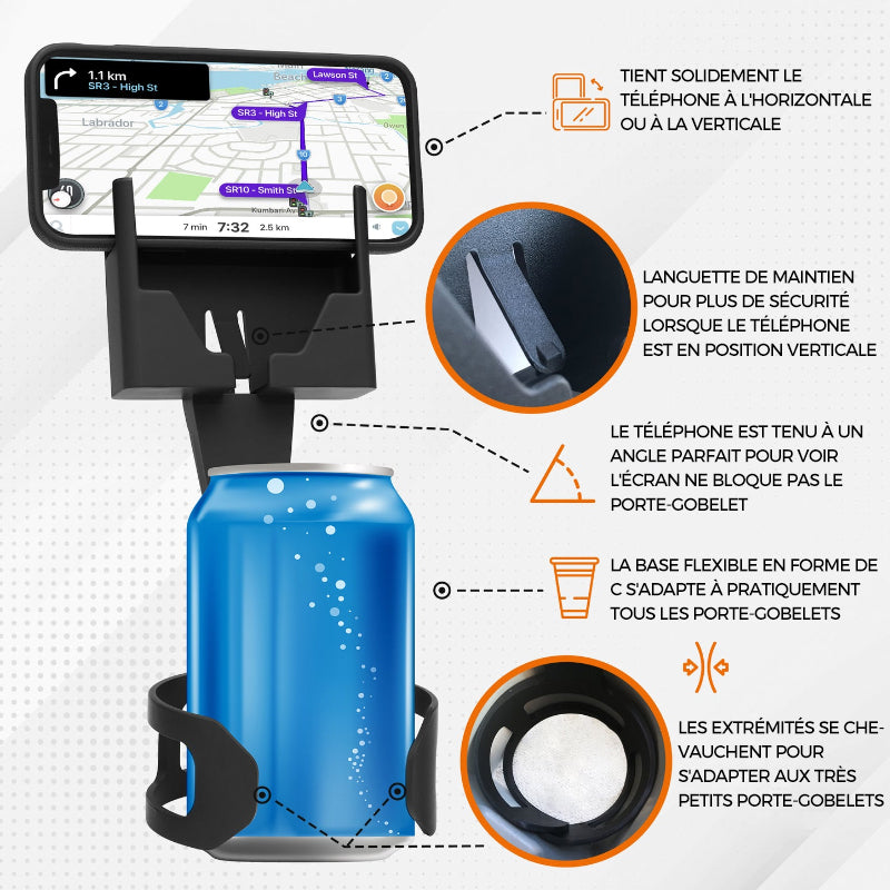 Support pour Téléphone Portable et Gobelet s'adapte parfaitement à n'importe quel porte-gobelet standard, ce qui vous permet d'avoir les mains libres tout en continuant à utiliser votre porte-gobelet. C'est un support de téléphone portable incroyablement simple que vous voudrez utiliser à chaque fois que vous conduirez!