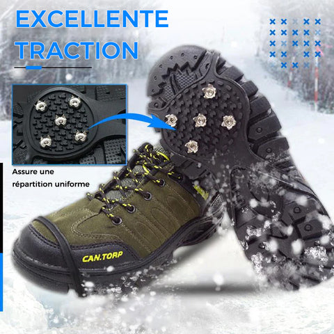 Enroulez ces poignées de chaussures de sécurité antidérapantes autour de vos bottes ou chaussures de randonnée lorsque le terrain devient glacé et glissant.