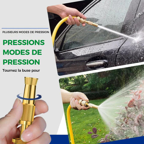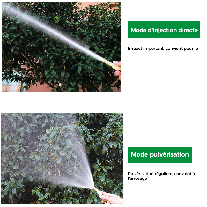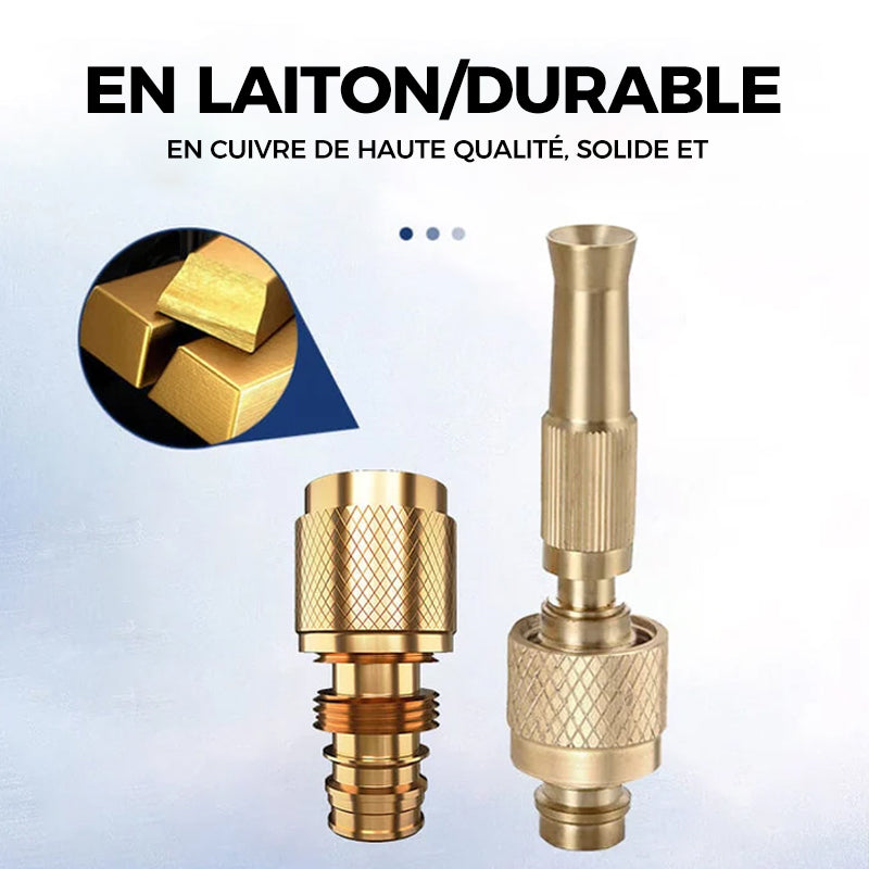 • Un arroseur pour tous les besoins: Que vous souhaitiez un jet à pression excessive pour faciliter les surfaces difficiles, ou une douche douce pour arroser votre pelouse ou laver votre chien, ce bec en laiton peut répondre à vos désirs. Le réglage de la douche offre une pulvérisation sensible, alors que le jet est extrêmement puissant.