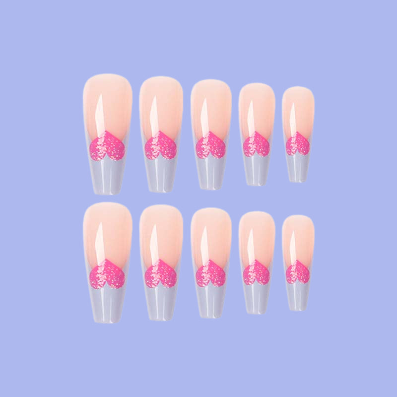 • 24pièces*Ongles violets à motif de cœur de style ballet