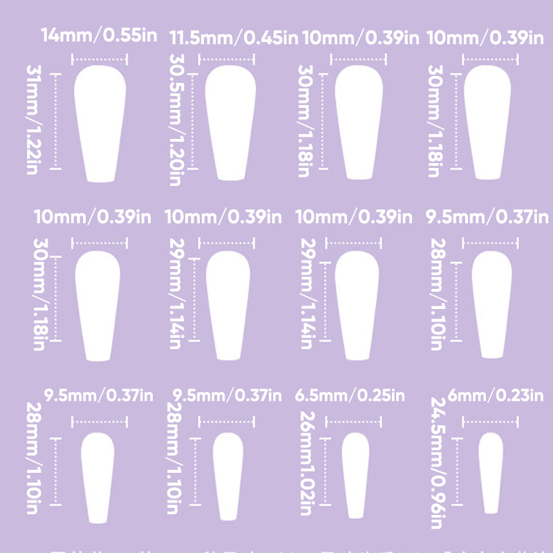 • ❤ 【Contenu de l'emballage】24 pièces d'ongles de style ballet violet à motif de cœur + 1g de colle. (La colle en gelée n'est pas aussi durable que la colle liquide, mais elle permet de réutiliser les faux ongles. Veuillez utiliser la bonne colle en fonction des différentes scènes)