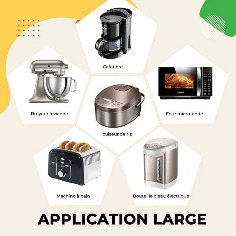 Convient à tout appareil avec câble (cuiseur à riz, friteuse à air, machine à café, four à micro-ondes, bouilloire électrique, sèche-cheveux, etc.), câble réseau, câble audio/vidéo, câble de charge, utilisation en cuisine/bureau/voiture, etc.