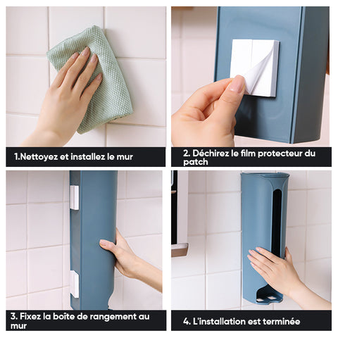 Très pratique : accrochez-le à l'intérieur de la porte du garde-manger ou de l'armoire. Installez-le sous une étagère, dans le garage ou dans un placard utilitaire. Accrochez-le près de la poubelle comme distributeur de sacs poubelle.
