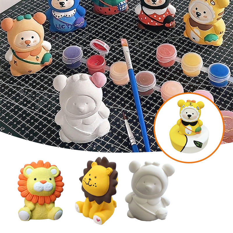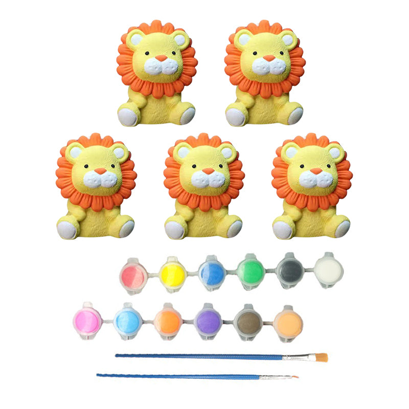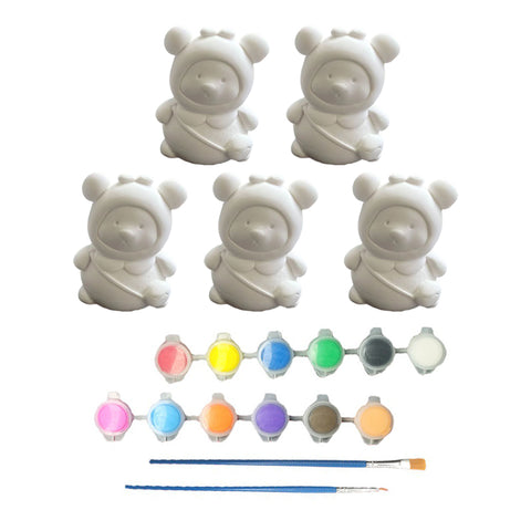 Forfait: 5* Ours/lion blanc peint à la main + 1* jeu de peinture(12 couleurs + 2 stylos + 1 palette)