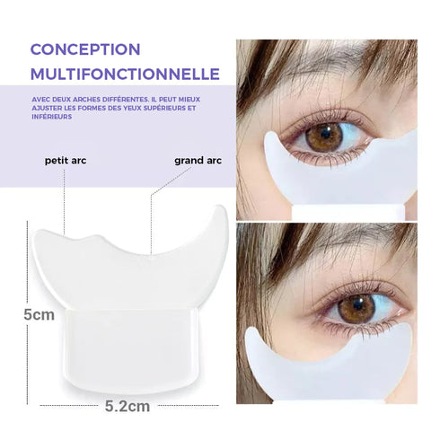 Courbure unique en demi-lune pour un ajustement parfait autour de l'œil, parfait pour protéger la zone sous les yeux des résidus de maquillage. Aide idéale pour appliquer le mascara, l'eye-liner, le fard à paupières, etc.