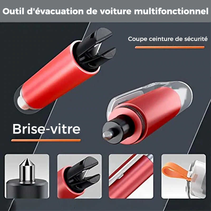 • Outil de sécurité 2 en 1: Cette clé de sortie de secours brise les vitres en 1 seconde et coupe rapidement les ceintures de sécurité, facilitant ainsi la sortie du véhicule en cas d'urgence.Emergency Life Key