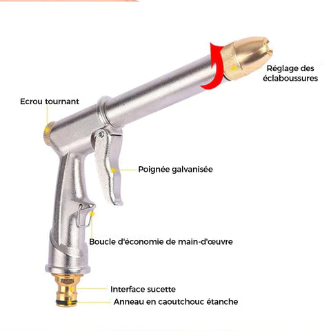• Diverses fonctions: Les buses améliorées offrent plus de pression et une variété de modèles de pulvérisation pour répondre à vos besoins, y compris l'arrosage du jardin, le nettoyage de la cour, le nettoyage de la voiture, etc.