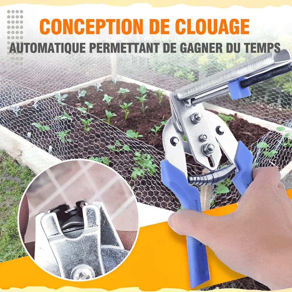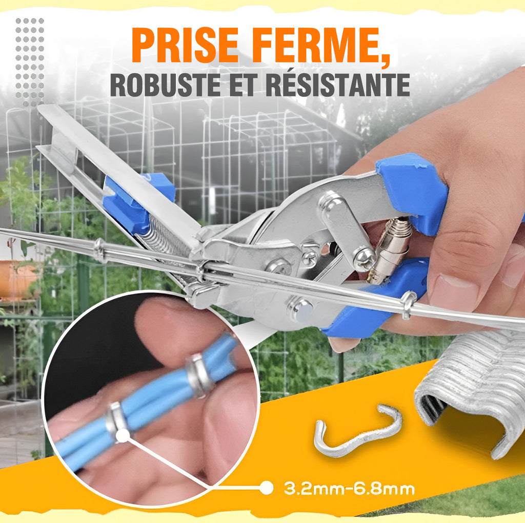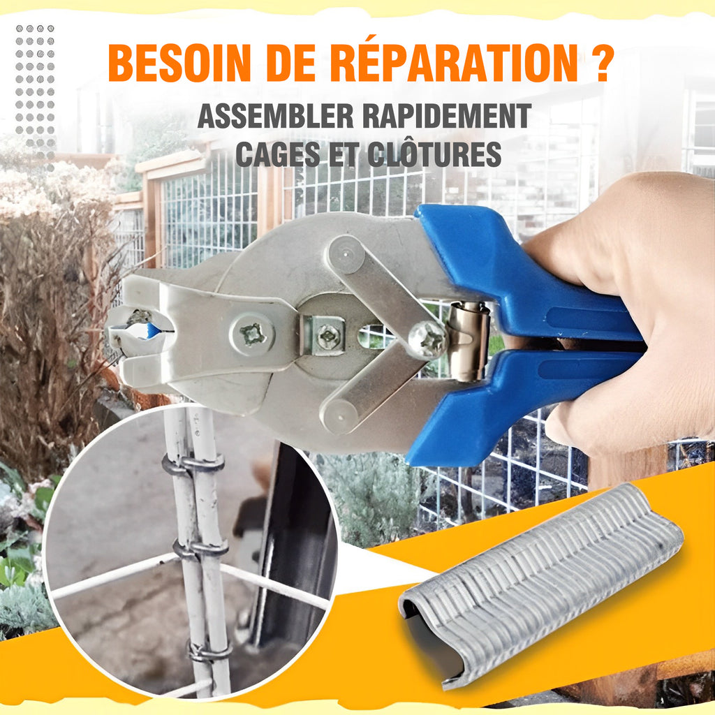 * Convient aux cages en fil de fer de 3 Ă 8 mm de diamĂštre et s'utilise facilement comme une agrafeuse, en serrant fermement.