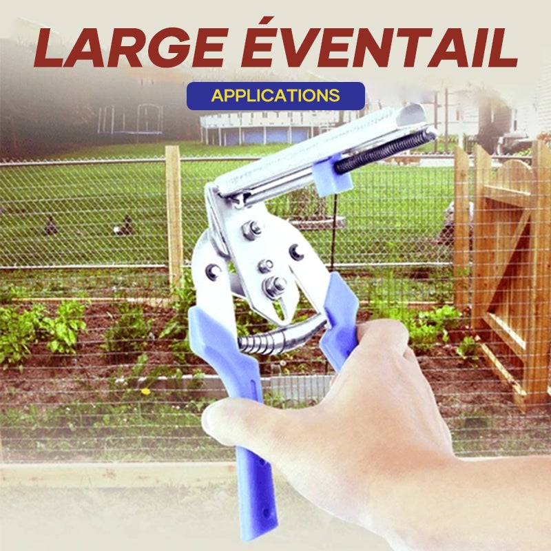 Une opération à une main est disponible. Vous ne perdrez pas de temps à attacher les anneaux à la main et à les tordre pour bien les ajuster. Cela accélÚre le temps que vous passez à fixer plusieurs cages ou clÎtures.