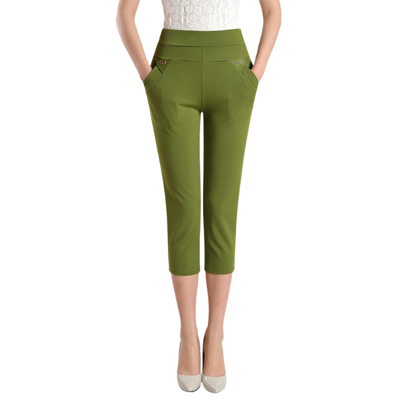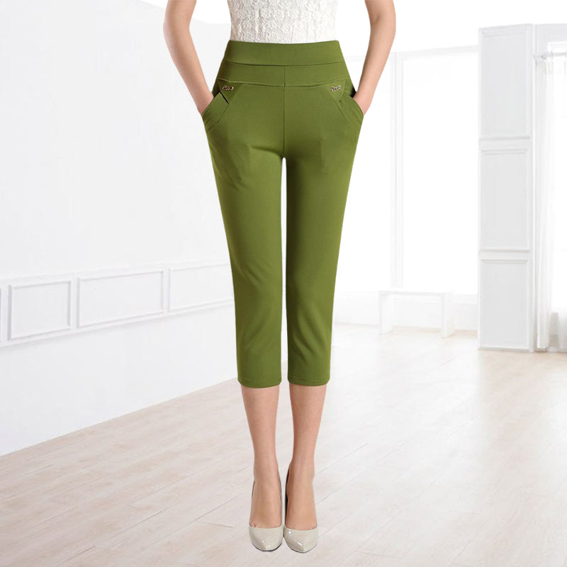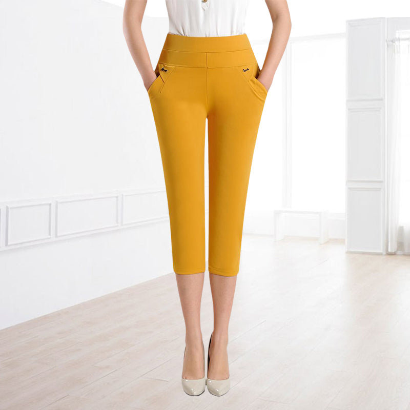 - 1 * Pantalon à sept points pour femmes Pantalon décontracté élastique taille haute