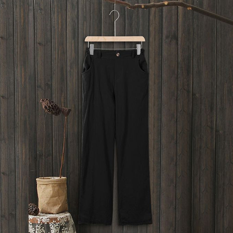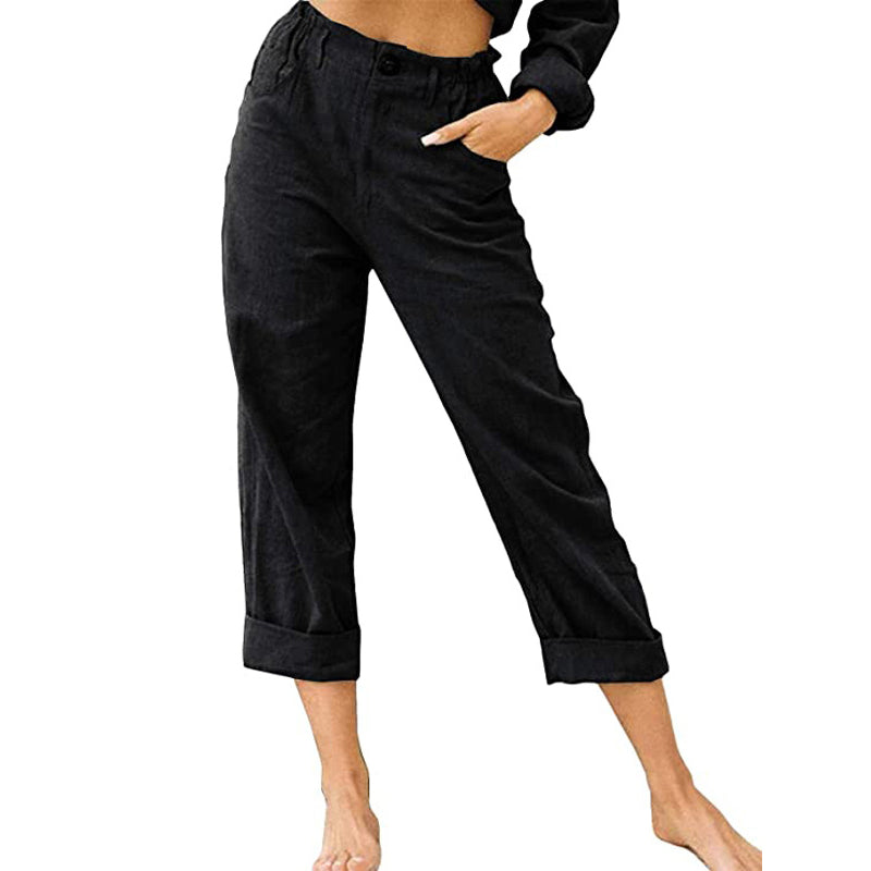 • 1 * Pantalon décontracté en coton et lin taille haute pour femmes