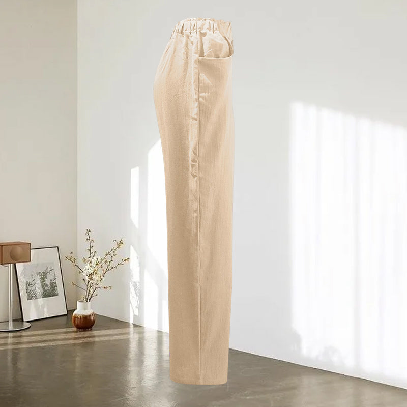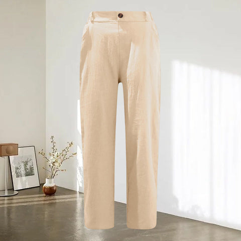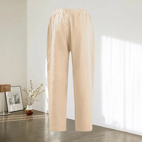Pantalon décontracté en coton et lin taille haute pour femmes