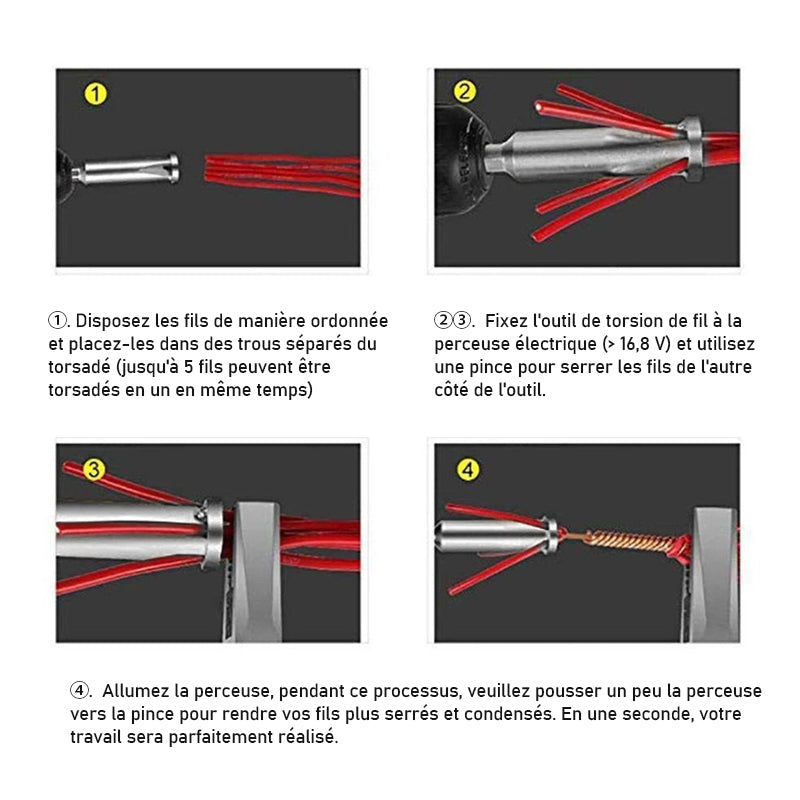 【Taille universelle】 Cet outil de torsion de fil peut tordre jusqu'à 5 fils (2,5 à 4 fils carrés) en même temps. Cela peut vous faire gagner du temps.