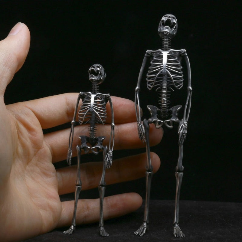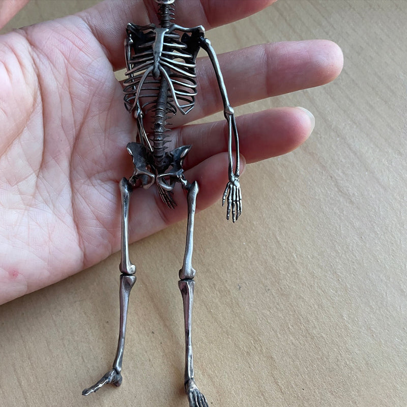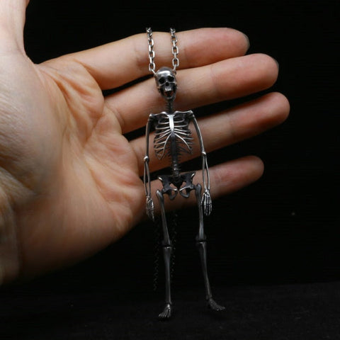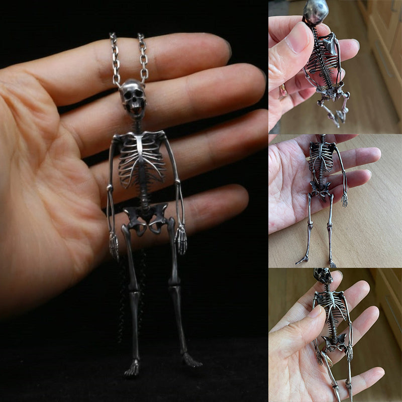 • De petite taille, mais il contient des dĂ©tails diaboliques, ce pendentif squelette en argent avec tĂȘte, bras, jambes et bouche mobiles est fabriquĂ© Ă  la main pour les amateurs d'os ultimes.