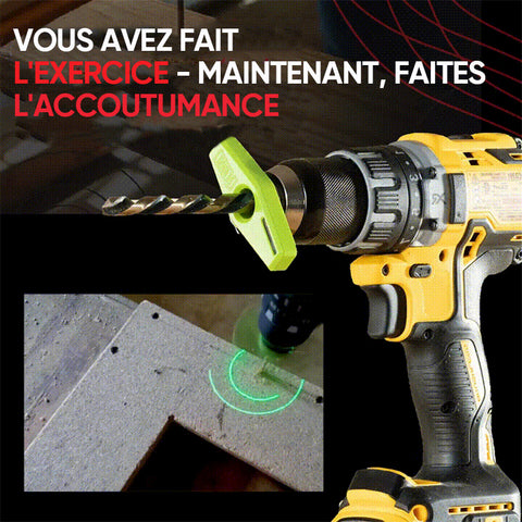 Il projette une série de motifs circulaires sur la surface de travail qui indiquent l'alignement ou le désalignement du foret par rapport à la surface de travail. Lorsque les motifs sont concentriques, le foret est droit par rapport à la surface de travail (et perpendiculaire à celle-ci).