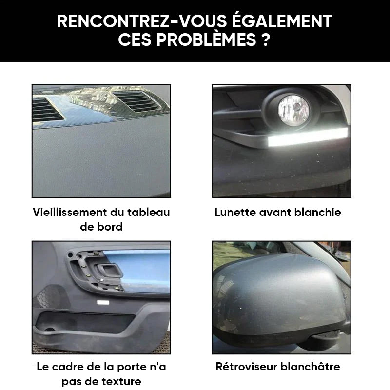 【Construit pour durer】Notre restaurateur de plastiques est conçu pour durer! Il offre une excellente brillance et vous serez étonné de voir comment il peut rafraîchir toute votre voiture en quelques minutes. Les effets peuvent durer jusqu’à 6 mois.