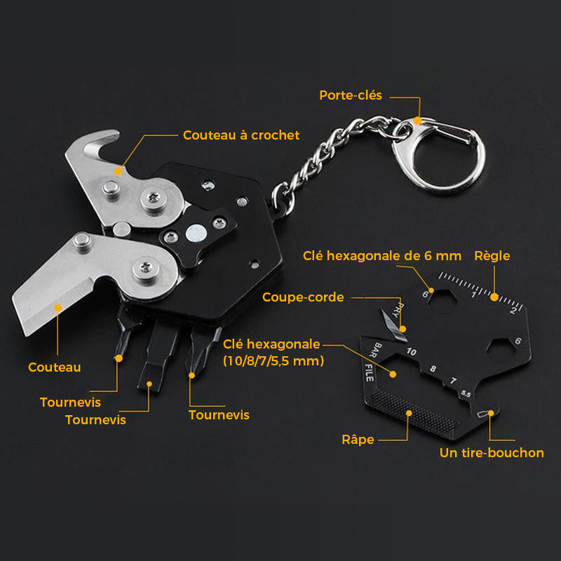 - Avec les différentes fonctions, le porte-clés multifonctionnel facilite la vie.