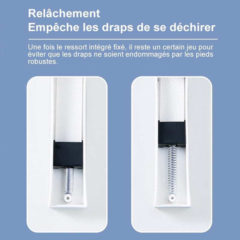 Les griffes sont solidement fixées pour empêcher le drap de lit de s'échapperLa hauteur peut être réglée arbitrairement, et les matelas fins et épais peuvent être utilisésRessort intégré, laissant un certain espace libre après la fixation pour empêcher le drap de lit d'être endommagé par une forte poussée.