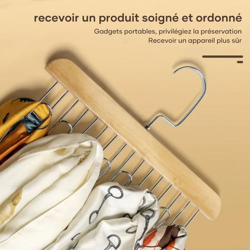 Conçu avec une grande capacité de 8 crochets, ce cintre permet de ranger vos ceintures, cravates, foulards, etc. et de garder votre garde-robe en ordre.