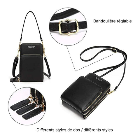 Il y a 3 poches principales 8 emplacements pour cartes et 1 fente pour permis de conduire à fenêtre transparente et un support de téléphone à écran tactile, répondent aux besoins quotidiens de stockage, une banque d’alimentation et des cartes de crédit, un téléphone portable, des cosmétiques, un passeport, des clés, des changements.