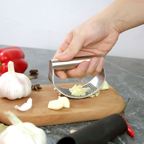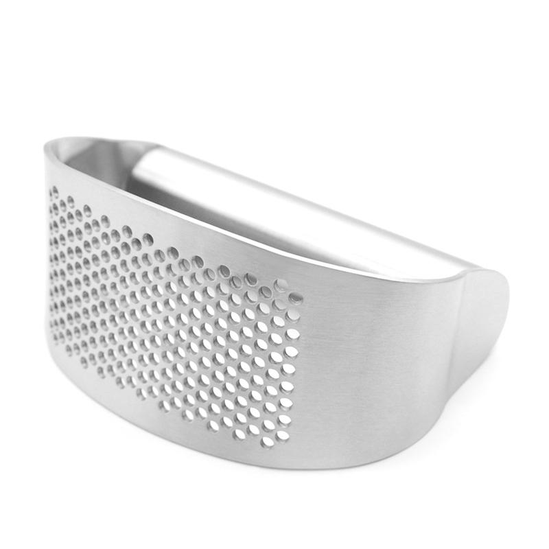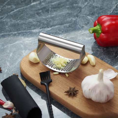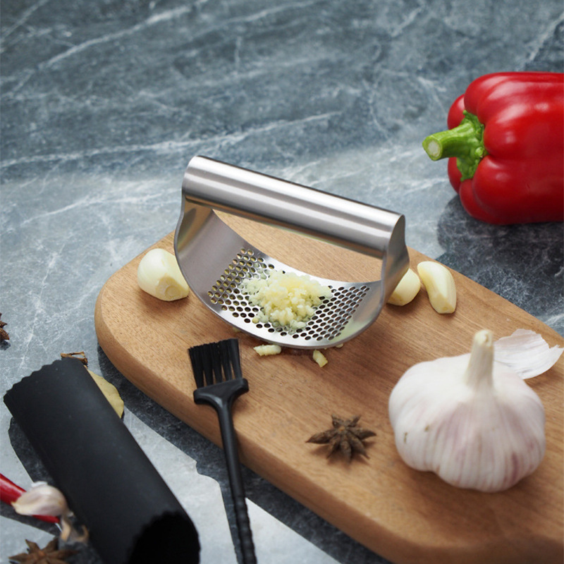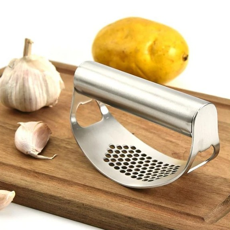 Ce nouveau presse-ail en forme d'arc avec une conception de poignée confortable facilite le pressage, même pour ceux qui ont une faible prise ou de petites mains.