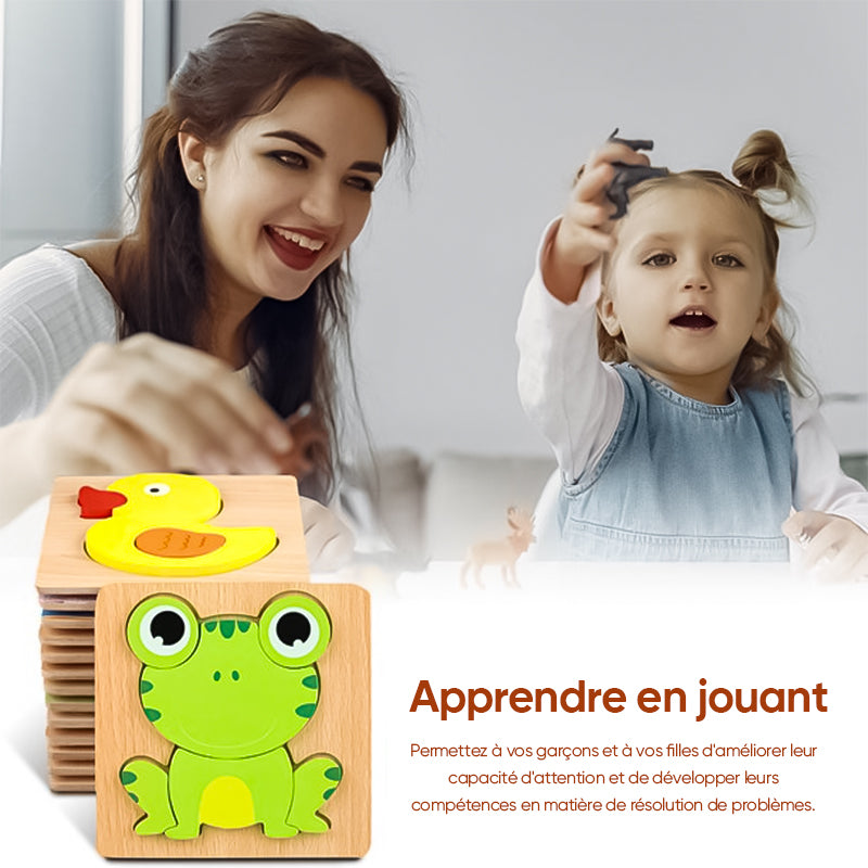 Le bois de haute qualité et les belles images et formes de dessins animés permettent au bébé de faire travailler ses mains et son cerveau, ce qui est à la fois éducatif et amusant !