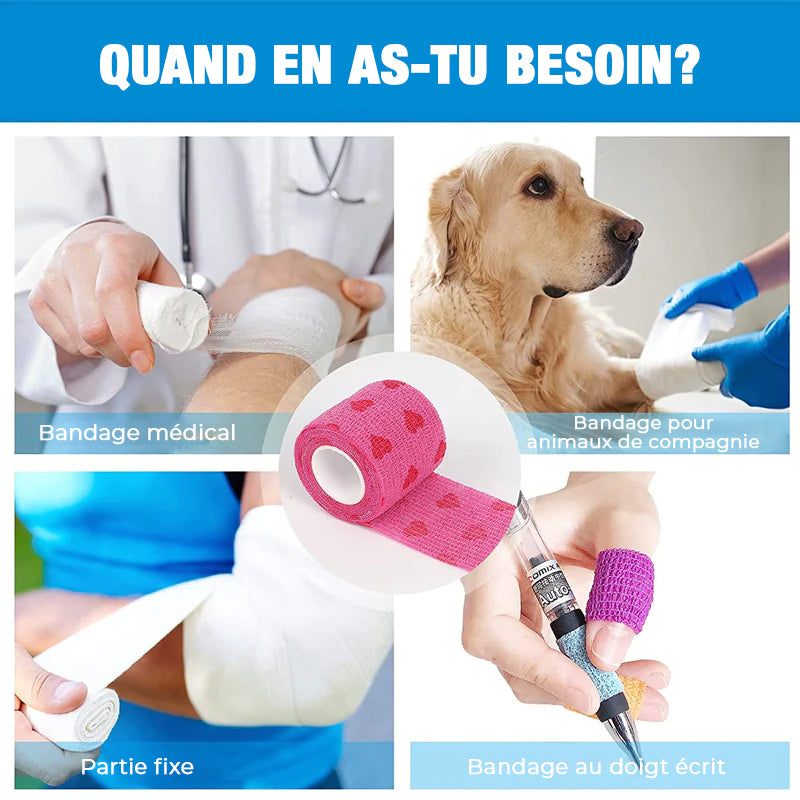 ✔️ Bandage élastique auto-adhésif - les bandes de bandage cohésives et conformables adhèrent à elles-mêmes plutôt qu'à la peau. Notre bande de compression cohésive élimine le besoin d'un tampon ou d'un spray adhésif et permet une application rapide. S'ils sont soigneusement retirés, ils peuvent être réutilisés.