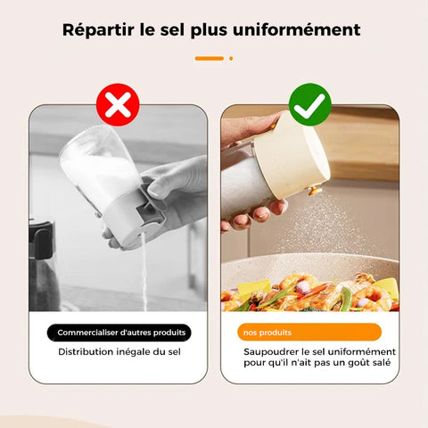 Assaisonnement sans effort : Ce distributeur de sel est doté d'un mécanisme de pulvérisation automatique qui vous permet d'assaisonner vos plats d'une simple pression sur un bouton. Il n'est pas nécessaire de secouer ou de tordre la bouteille. Sa grande capacité de 180 ml et son bec verseur de grand diamètre facilitent le remplissage et le nettoyage.
