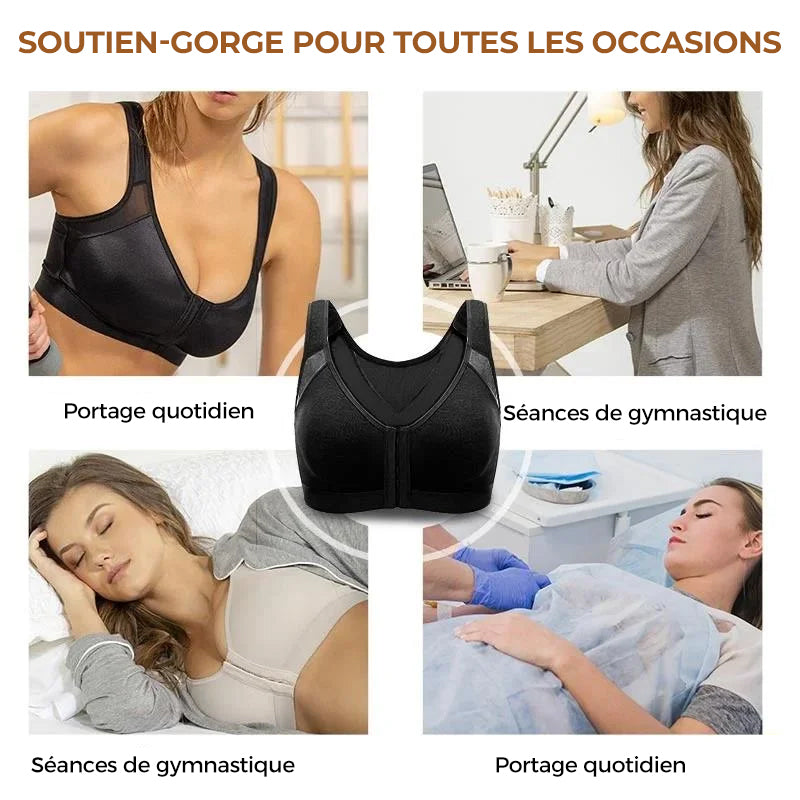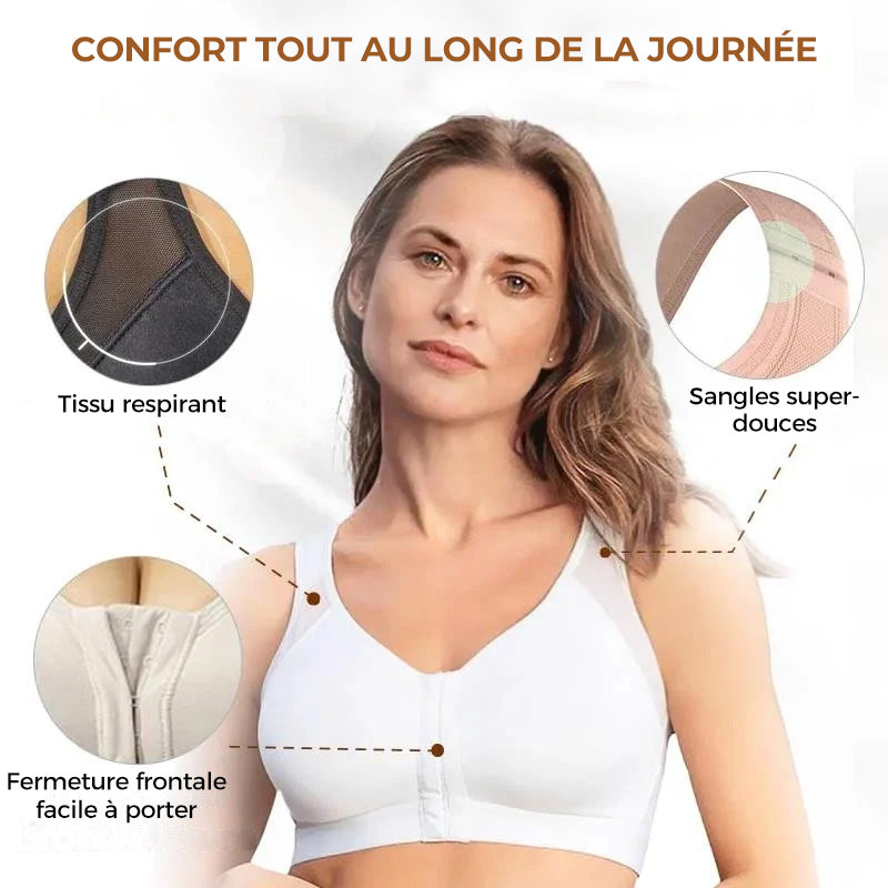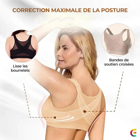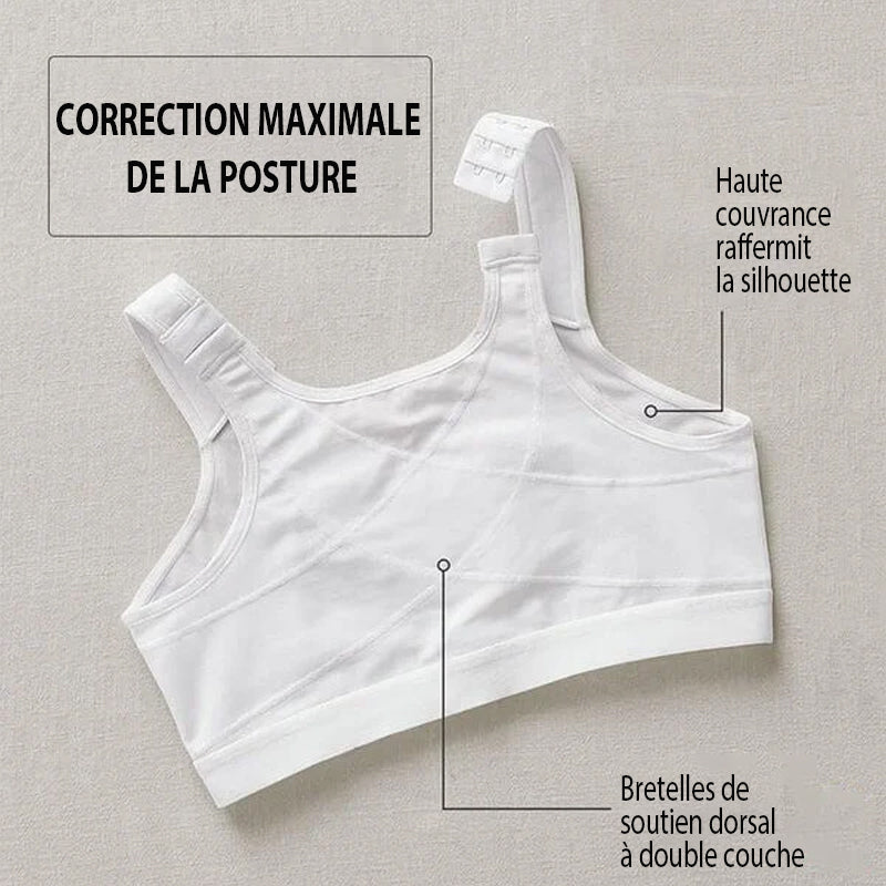 - Ce fantastique soutien-gorge correcteur de posture soutient votre dos grâce à sa conception à double épaisseur qui vous permet de bouger librement. Sa large bande sous la poitrine offre un excellent soutien sans fil et un grand confort en comprimant fermement les aisselles et le dos pour réduire les bourrelets du soutien-gorge. Les bonnets sont à double épaisseur pour une couverture et un ajustement complets. Les bretelles sont larges, souples et réglables pour soulager les épaules.