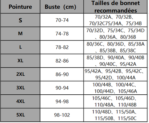 FORMULE FACILE: Nous savons que l'achat d'un soutien-gorge peut être un peu difficile car les marques ont des tailles différentes, mais nous avons établi nos tailles selon les normes américaines, afin que vous trouviez toujours votre taille parfaite. Notre tableau des tailles couvre toutes les bases avec une gamme étendue de tailles plus pour tout le monde!