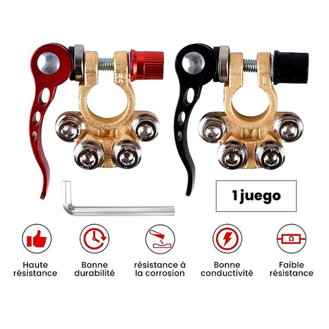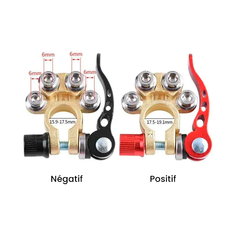 • Les pôles plus et moins conviennent à la plupart des modèles de batterie. Excellent pour remplacer les pinces usées et corrodées.