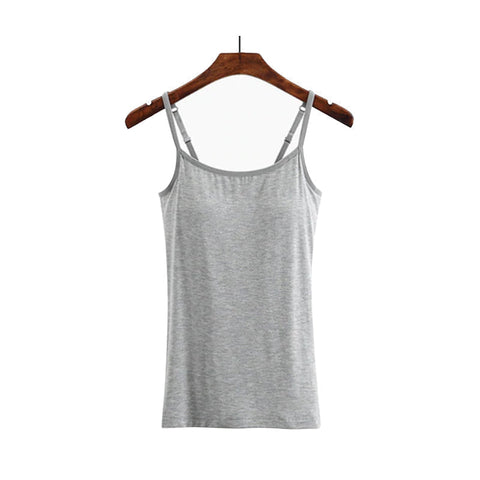 L'encolure dégagée classique permet à cette camisole de se porter sous n'importe quel vêtement. Il s'agit également d'un solide débardeur autonome doté d'un soutien-gorge à étagères intégré !