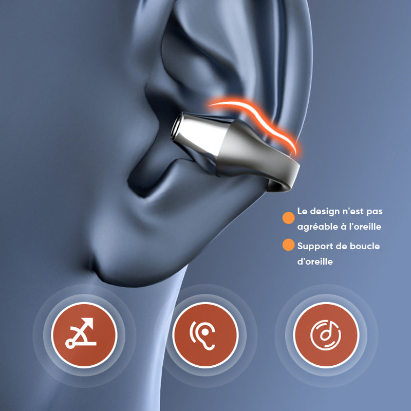 PAS DANS L'OREILLE: Qualité d'appel claire, conception du clip d'oreille, port prolongé sans pression.