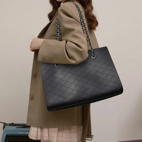 • Point culminant du design : série classique de sacs pour femmes à motif de losanges. Processus spécial pour la chaîne de quincaillerie. Laissez le sac avoir l'air très élégant. Artisanat raffiné. Placage sous vide. Fort anti-oxydation. Superbe texture brillante. Plus visuellement en couches.