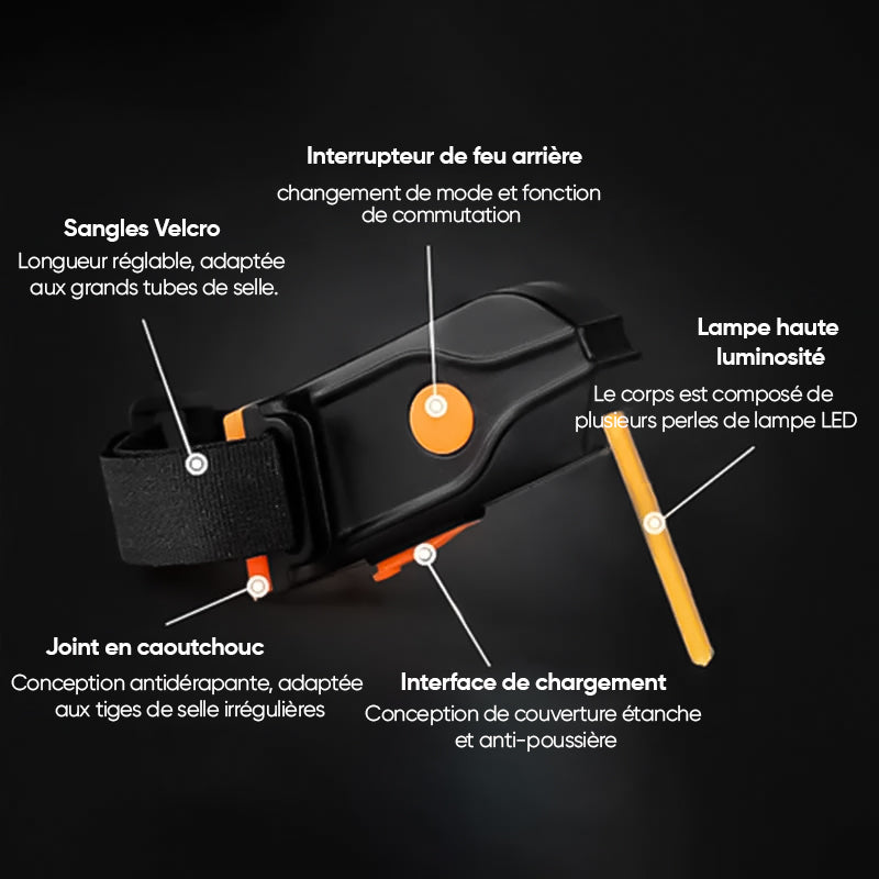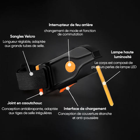 LA SÉCURITÉ AVANT TOUT - Conçu avec précision pour des performances inégalées, ce feu arrière est le compagnon de sécurité idéal pour toutes les aventures cyclistes.