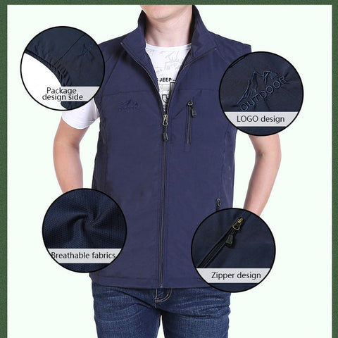 - 1 * Gilet homme multi-poches imperméable et résistant à l'usure