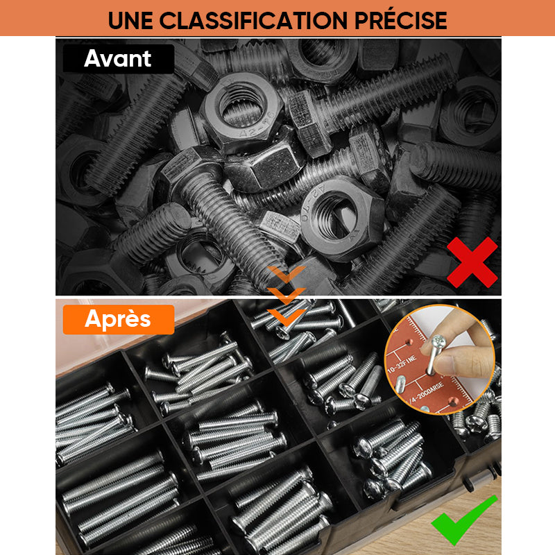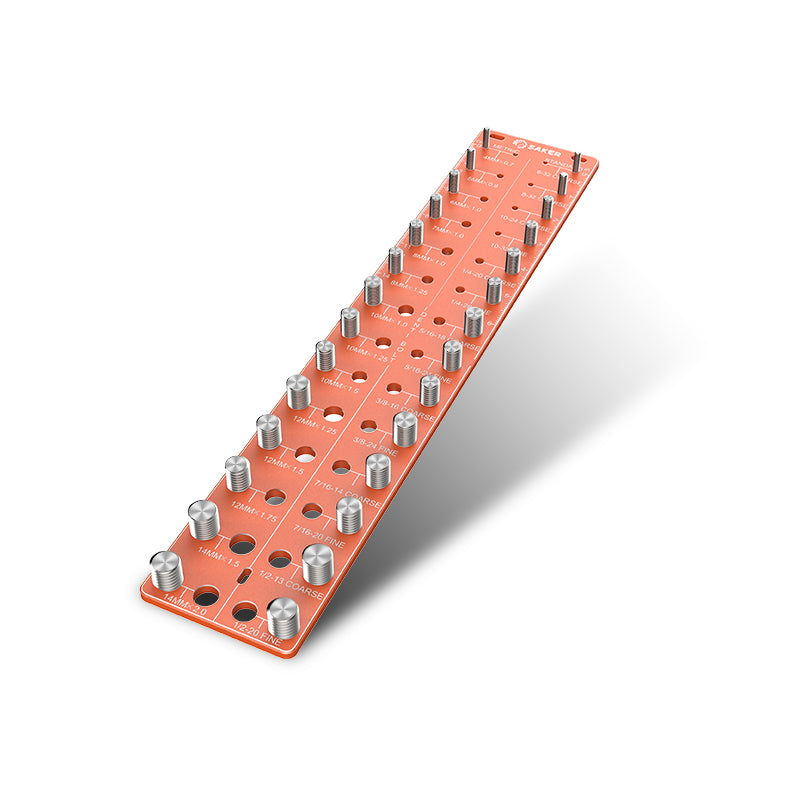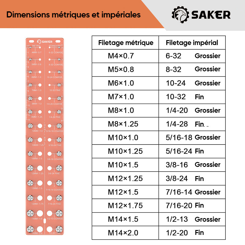 • DÉTECTION DE GRANDES DIMENSIONS - Notre vérificateur de filets d'écrous et de boulons identifie instantanément 28 tailles distinctes, englobant les tailles de filets métriques de M4 x 0,7 à M14 x 2,0, et les filets impériaux de #6 - 32 grossier à 1/2 - 20 fin. Un guichet unique pour toutes les vérifications de quincaillerie standard.