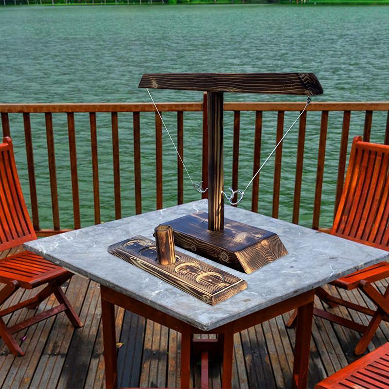 Jeu de combat de lancer de crochets et d'anneaux. Le jeu de bar Ă domicile le plus appropriĂ© pour vous est une combinaison par paires ou un jeu unique. Le jeu classique, dans lequel les joueurs tentent de faire atterrir un anneau attachĂ© Ă une ficelle sur un crochet attachĂ© Ă un poteau central et Ă une Ă©chelle, et peut ĂȘtre utilisĂ© soit pour jouer Ă des jeux comme le lancer d'anneaux, le trou de maĂŻs, la tasse Ă retourner et plus encore, soit comme un jeu sĂ©parĂ©.